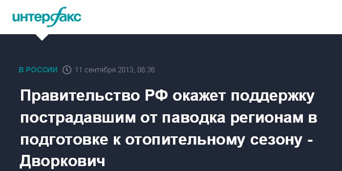 Правительство РФ окажет поддержку пострадавшим от паводка регионам в подготовке к отопительному сезону - Дворкович