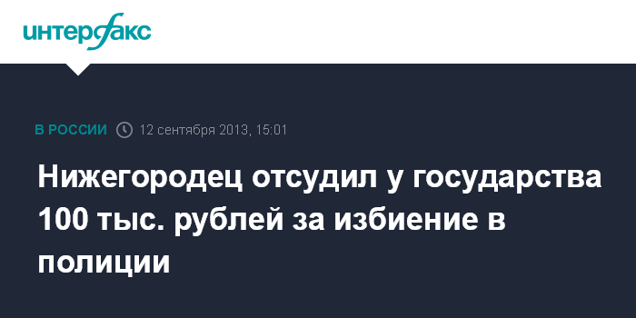 Нижегородец отсудил у государства 100 тыс. рублей за избиение в полиции