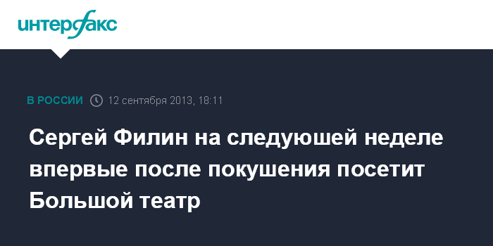 Как сообщила в четверг "Интерфаксу" пресс-секретарь ГАБТа Катерина Новикова, пока Филин не готов выйти на работу. "Сергей только заглянет в театр на сбор труппы", - заявила Новикова.