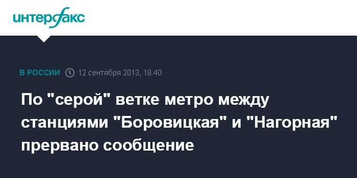 По "серой" ветке метро между станциями "Боровицкая" и "Нагорная" прервано сообщение