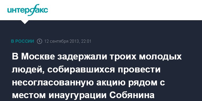 В Москве задержали троих молодых людей, собиравшихся провести несогласованную акцию рядом с местом инаугурации Собянина