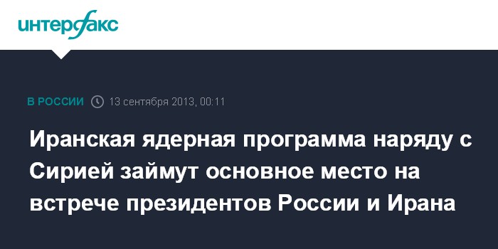 "Думаю, что эти темы съедят много времени. К этому большой интерес с учетом высказываний нового иранского президента", - сказал Ю.Ушаков.