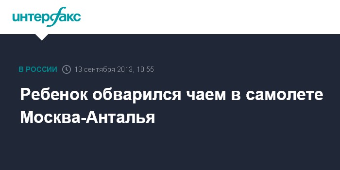 Симферополь. 13 сентября. INTERFAX.RU - Пассажирский Ил-96, летевший из Москвы в Анталью, пришлось экстренно посадить в Симферополе из-за ожогов, полученных маленьким пассажиром, пролившим на себя кипяток.