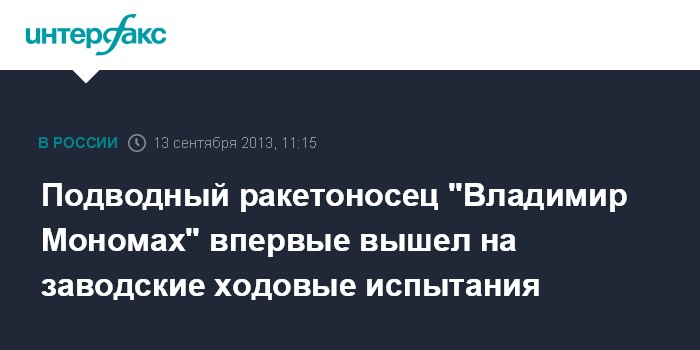 "Ракетоносец "Владимир Мономах" под командованием капитана 1 ранга Александра Надеждина накануне впервые покинул территорию "Севмаша" и направился в Белое море для ходовых испытаний", - сообщил "Интерфаксу" в пятницу источник в кораблестроительной отрасли.