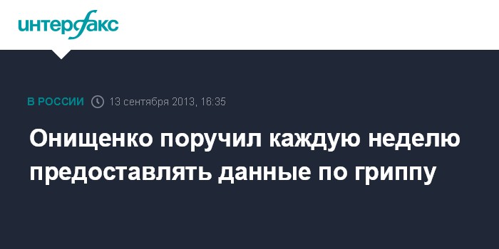 Глава Роспотребнадзора Геннадий Онищенко в письме главам территориальных управлений ведомства поручил каждую неделю предоставлять данные о заболеваемости среди детей и взрослых.