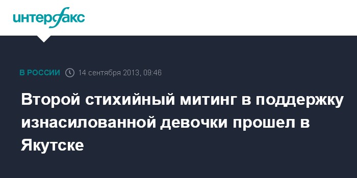 8 сентября в Якутске было совершено изнасилование 4-летней девочки. На месте преступления были задержаны три человека, однако подозреваемым по делу проходит только один. Двое других проходят как свидетели, оба после допроса были отпущены на свободу.