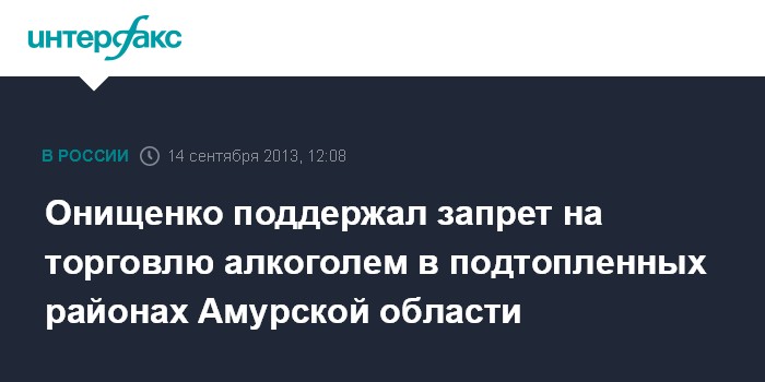 Москва. 14 сентября. INTERFAX.RU - Руководитель Роспотребнадзора, главный государственный санитарный врач РФ Геннадий Онищенко считает правильным продление моратория на продажу спиртного в районах Амурской области, которые пострадали от наводнения.