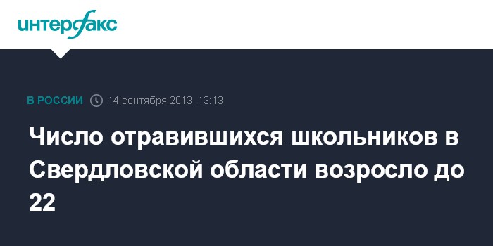 Екатеринбург. 14 сентября. INTERFAX.RU - По данным на 10:00 мск, число отравившихся школьников в Свердловской области возросло до 22 человек, сообщил агентству "Интерфакс-Урал" руководитель пресс-службы ГУ МВД РФ по Свердловской области Валерий Горелых.