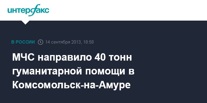 Москва. 14 сентября. INTERFAX.RU - Самолет ИЛ-76 МЧС России с грузом гуманитарной помощи вылетел в Комсомольск-на-Амуре, сообщает в субботу Национальный центр управления в кризисных ситуациях (НЦУКС) МЧС РФ.