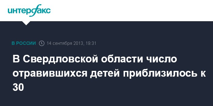 Москва. 14 сентября. INTERFAX.RU - Число отравившихся школьников в Свердловской области возросло до 27 человек, сообщают в субботу в региональном минздраве.