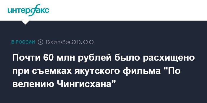 Почти 60 млн рублей было расхищено при съемках якутского фильма "По велению Чингисхана"