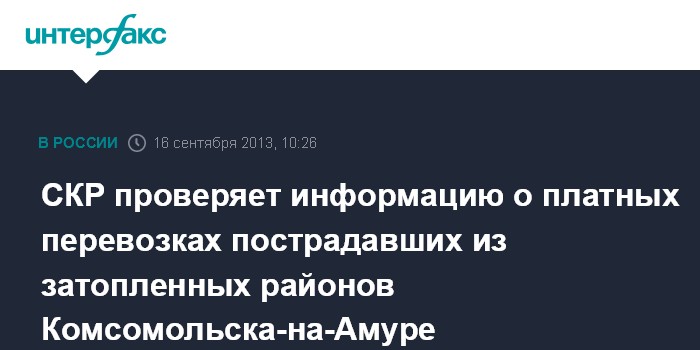 Москва. 16 сентября. INTERFAX.RU - Следственный комитет РФ начал проверку по фактам перевозок за деньги на лодках людей в пострадавших районах Комсомольска-на-Амуре, сообщили "Интерфаксу" в пресс-службе СКР.