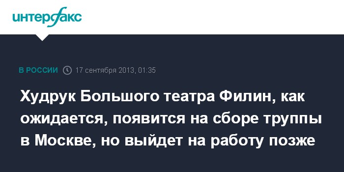 Вместе с тем, по словам пресс-секретаря, С.Филин еще не готов окончательно выйти на работу. "Он только заглянет в театр во вторник", - подчеркнула она.