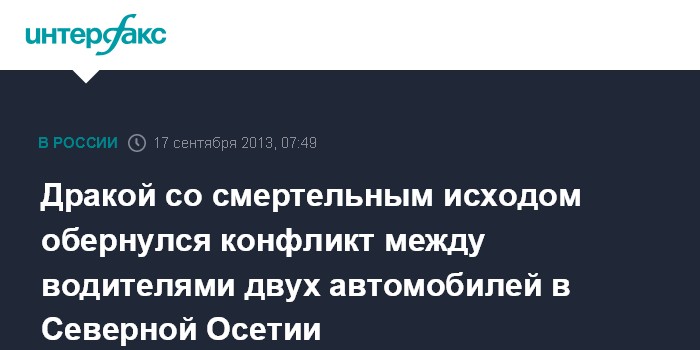 Ростов-на-Дону. 17 сентября. ИНТЕРФАКС-ЮГ - Пассажир легкового автомобиля "Лада Приора" скончался через несколько часов после драки, возникшей на федеральной трассе "Кавказ" в Кировском районе Северной Осетии, сообщили во вторник агентству "Интерфакс-Юг" в правоохранительных органах республики.