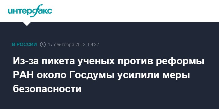 Москва. 17 сентября. ИНТЕРФАКС - Около здания Госдумы усилены меры безопасности в связи с намерением ученых-академиков провести пикет у здания в связи с рассмотрением Госдумой законопроекта о РАН.