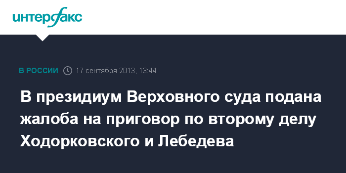 В президиум Верховного суда подана жалоба на приговор по второму делу Ходорковского и Лебедева