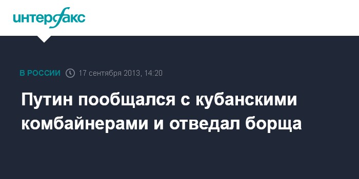 Путин пообщался с кубанскими комбайнерами и отведал борща