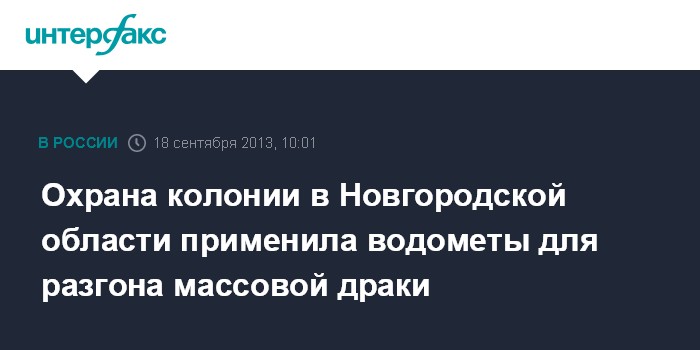 По его данным, минувшей ночью, примерно в 0:30 мск в поселке Парфино Новгородской области на территории ИК-9 строго режима произошел конфликт между 80 осужденными, который перерос в драку. На то, чтобы пресечь побоище, сотрудникам колонии понадобилось полчаса, охрана применила водометы.