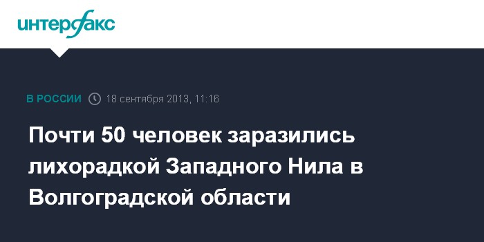 Волгоград. 18 сентября. INTERFAX.RU - Количество заболевших лихорадкой Западного Нила (ЛЗН) в Волгоградской области увеличилось до 48 человек, сообщает региональное управление Роспотребнадзора в среду.