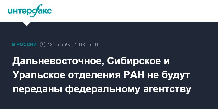 Дальневосточное, Сибирское и Уральское отделения РАН не будут переданы федеральному агентству