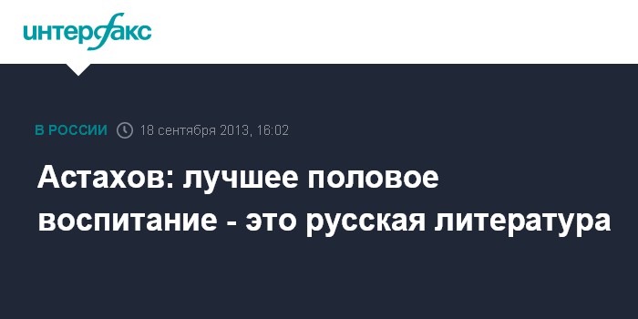 "Сегодня лучшее, вообще-то, половое воспитание - это русская литература. И вообще - литература. Больше надо читать детям - и там все есть, и про любовь, и про отношение полов. И воспитывать должна школа детей целомудренными, в духе понимания семейных ценностей", - сказал П.Астахов в эфире телеканала "Россия-24" в среду.