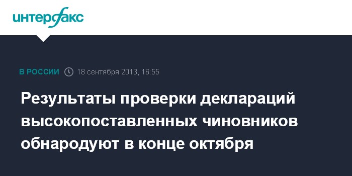 Валдай. 18 сентября. INTERFAX.RU - Результаты проверки деклараций чиновников, как ожидается, будут обнародованы в конце октября.