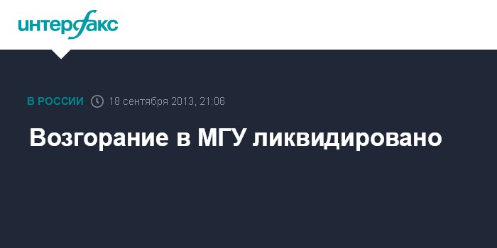 Москва. 18 сентября. INTERFAX.RU - Пожарные ликвидировали возгорание в Главном здании МГУ, сообщили "Интерфаксу" в пресс-службе ГУ МЧС России по Москве.