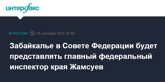 Забайкалье в Совете Федерации будет представлять главный федеральный инспектор края Жамсуев