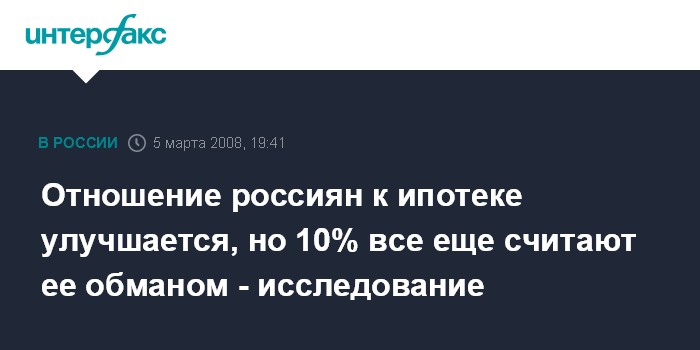 Отношение россиян к ипотеке улучшается, но 10% все еще считают ее обманом - исследование