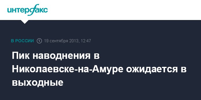 Хабаровск. 19 сентября. INTERFAX.RU - Гидрологи прогнозируют пик наводнения в районе Николаевска-на-Амуре (Хабаровский край) к 22 сентября, уровень Амура может подняться до 280-320 см, сообщает пресс-служба ГУ МЧС по региону в четверг.
