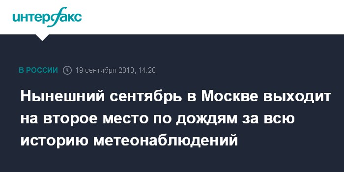 "Таким образом, нынешний сентябрь выйдет как минимум на второе место по осадкам за историю метеонаблюдений в Москве", - отметил собеседник "Интерфакса".
