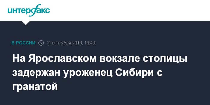 На Ярославском вокзале столицы задержан уроженец Сибири с гранатой