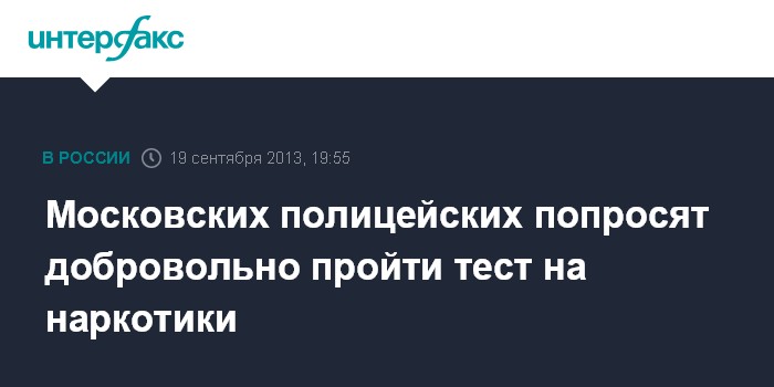 Москва. 19 сентября. INTERFAX.RU - Сотрудникам столичной полиции предложат пройти добровольное тестирование на наркотики, сообщили "Интерфаксу" в пресс-службе ГУ МВД России по Москве в четверг.