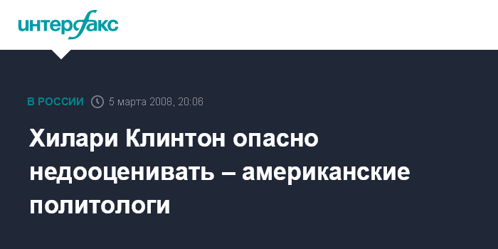 Москва. 5 марта. ИНТЕРФАКС - Американские политологи призвали участников первичных выборов в США, а также российских политологов избегать недооценки четы Клинтонов.