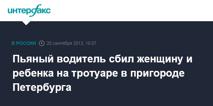 Санкт-Петербург. 20 сентября. INTERFAX.RU - В Гатчине (Ленинградская область) в результате выезда легкового автомобиля на тротуар пострадали женщина и ребенок.
