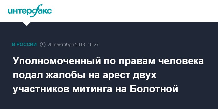 Уполномоченный по правам человека подал жалобы на арест двух участников митинга на Болотной