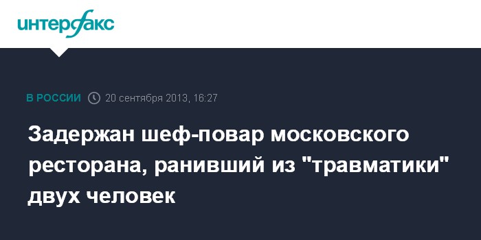 Москва. 20 сентября. INTERFAX.RU - Столичная полиция разыскала и задержала шеф-повара московского ресторана, выстрелившего в лицо предпринимателю и его отцу в начале сентября.