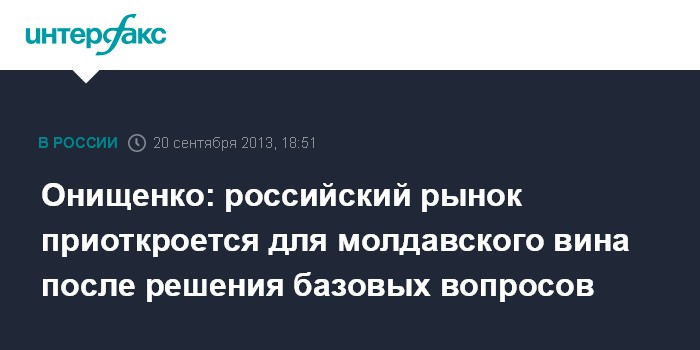"Допуск будет осуществляться не всем чохом. В какой-то мере это будет возврат к 2006 году, мы будем каждое индивидуальное предприятие рассматривать. Когда это рассмотрение начнется - полностью зависит от молдавской стороны. Я вам свои сроки назову после того, как я скажу: да, Молдавия предоставила нам удовлетворяющие нас обязательства", - сообщил Г.Онищенко.