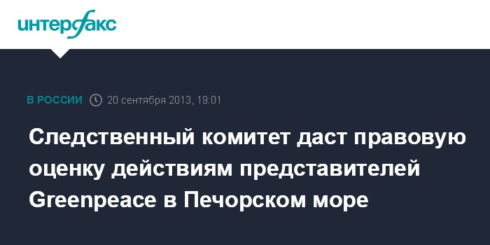 Москва. 20 сентября. INTERFAX.RU - Следственный комитет проведет проверку инцидента в акватории Печорского моря в районе платформы "Приразломная", где неустановленные лица, предположительно имеющие отношение к экологической организации Greenpeace, пытались штурмовать платформу, сообщает пресс-служба СКР.