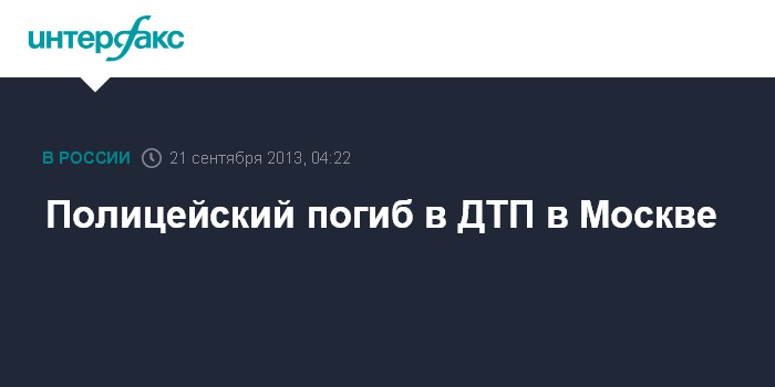 Москва. 21 сентября. ИНТЕРФАКС - Сотрудник полиции погиб в ДТП в в субботу на северо-востоке Москвы, сообщили "Интерфаксу" в пресс-службе столичного главка МВД.