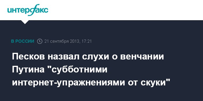 Песков назвал слухи о венчании Путина "субботними интернет-упражнениями от скуки"