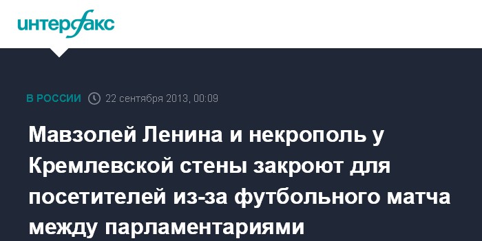 Мавзолей Ленина и некрополь у Кремлевской стены закроют для посетителей из-за футбольного матча между парламентариями