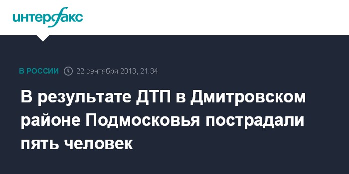По данным регионального главка МЧС, в результате аварии пострадали пять человек. Пострадавшие с различной степенью тяжести отправлены в Дмитровскую ЦРБ.