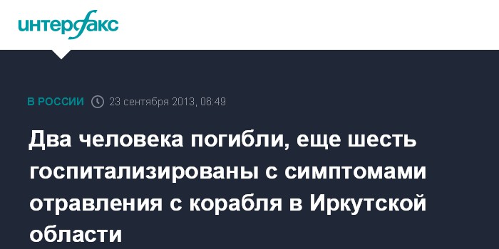 Два человека погибли, еще шесть госпитализированы с симптомами отравления с корабля в Иркутской области