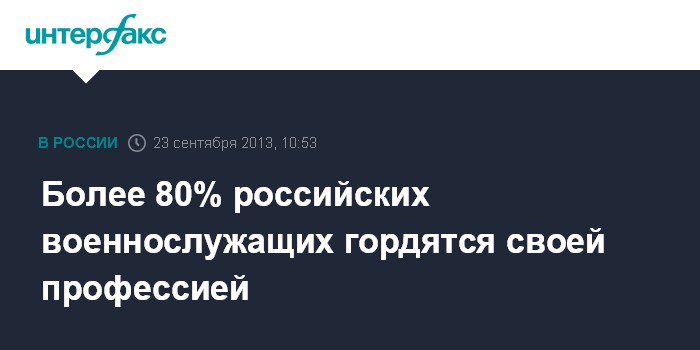 "Общая доля военнослужащих, испытывающих гордость за принадлежность к профессии защитника Отечества, превышает 80 процентов. При этом в 2011 и 2012 годах этот показатель составлял 59 и 62 процента соответственно", - говорится в сообщении, поступившем в "Интерфакс" в понедельник.