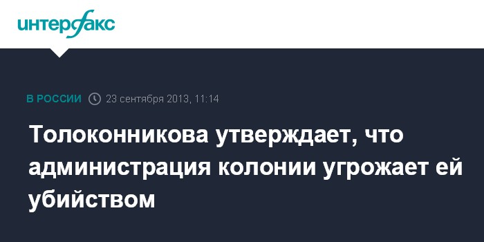 Москва. 23 сентября. INTERFAX.RU - Отбывающая наказание участница Pussy Riot Надежда Толоконникова объявила голодовку в колонии, заявив, что администрация угрожает ей убийством.
