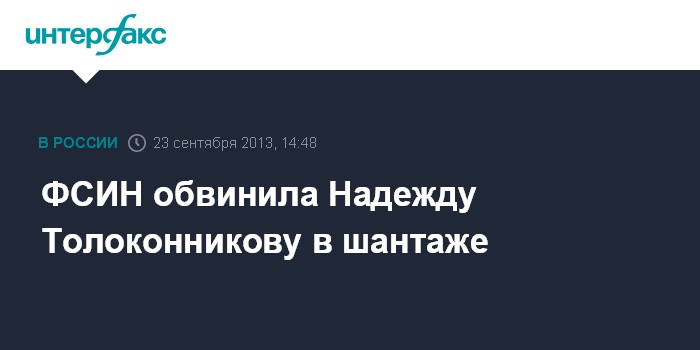 Москва. 23 сентября. INTERFAX.RU - Защита участницы Pussy Riot Надежды Толоконниковой и ее супруг шантажировали замначальника Мордовской колонии заявлением об угрозах в ее адрес, заявили в пресс-бюро ФСИН РФ. "17 сентября заместителю начальника ИК-14 Ю. Куприянову обратились супруг осужденной Петр Верзилов и ее адвокат Ирина Хрунова. Во время беседы они предложили перевести Толоконникову в другой отряд и трудоустроить ее в художественную мастерскую", - сказал сотрудник пресс-бюро в понедельник "Интерфаксу".