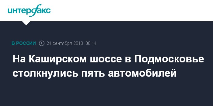 Москва. 24 сентября. INTERFAX.RU - Пять автомобилей столкнулись утром во вторник на Каширском шоссе в сторону аэропорта "Домодедово".