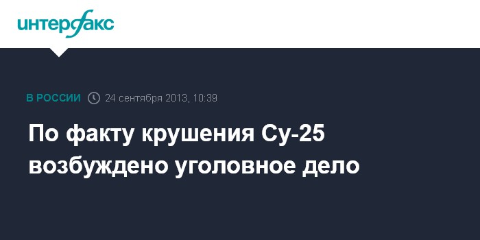 Москва. 24 сентября. INTERFAX.RU - Военные следователи возбудили уголовное дело по статье о нарушении правил полетов в связи с крушением штурмовика Су-25 в Краснодарском крае.