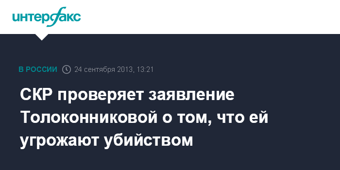 СКР проверяет заявление Толоконниковой о том, что ей угрожают убийством